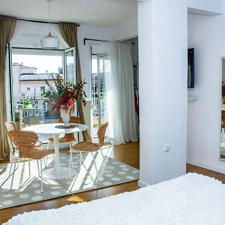 У цьому помешканні до послуг гостей кавоварка і обладнана кухня з електрочайником, холодильником і скляним посудом. Апартаменти розташовані на відстані всього лише 10 хвилин ходьби від автобусної зупинки Casa Bianca та майже за 7 км від залізничного вокзалу Thessaloniki central. Гостям пропонується терасу з видом на місто.